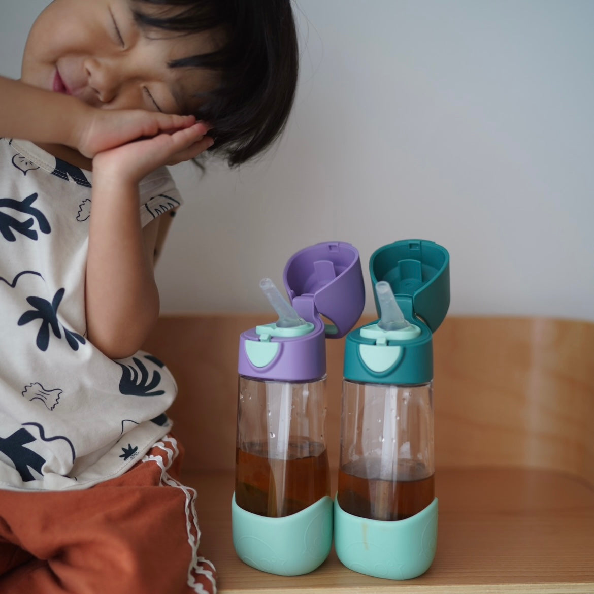 角度のついたシリコンストローで飲み口もしっかりしてるので小さなお子様でも飲みやすい♡