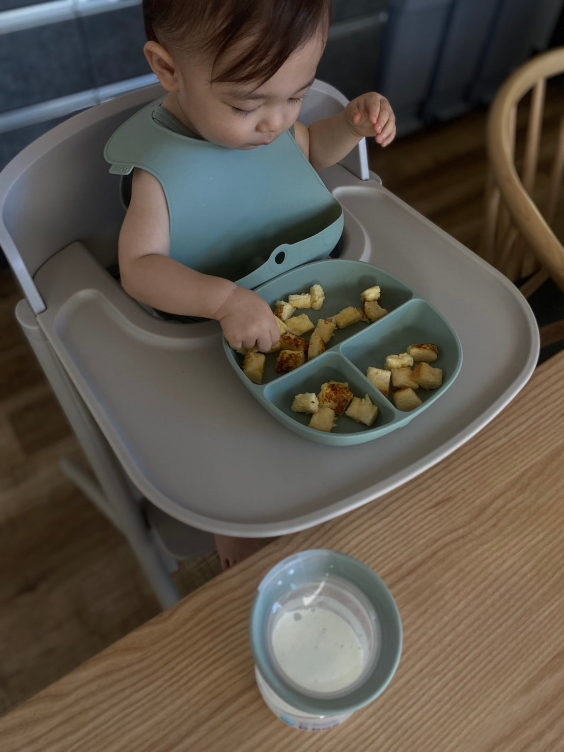 ビブは深さもあり、中に仕切りがついたステイオープンポケット設計が特徴で、食べこぼしをしっかりキャッチしてくれます🤲