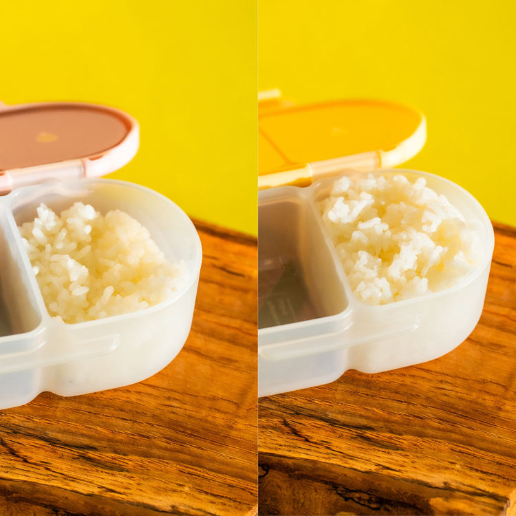 b.boxのお弁当箱は高さがあるため、高さの調整でお米を入れる量を調整できます。