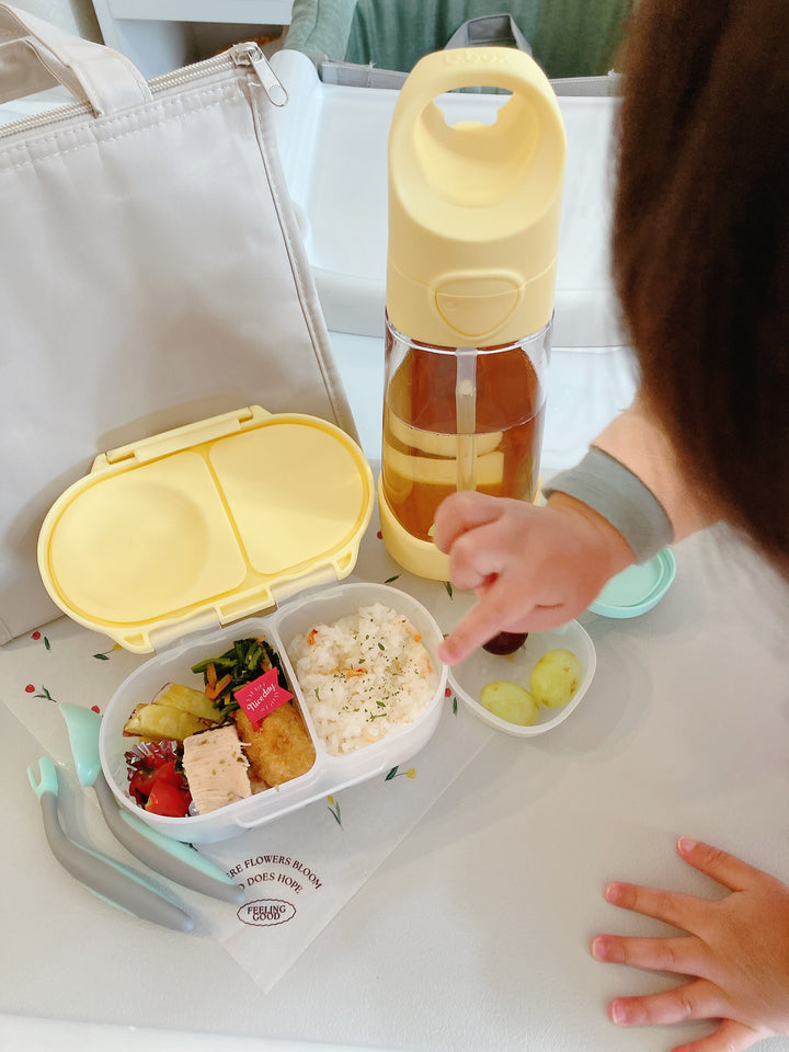 専用のハンドルをつけることでより持ちやすくなります。ストローマグからのステップアップや、保冷機能をつけてお出かけしたい際に便利です。成長に合わせてカスタマイズできるドリンクボトルです。