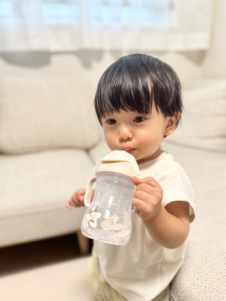 本体は軽量で握りやすいハンドル付きで、哺乳瓶からのステップアップや、離乳食と同時期のストローデビューにも最適。お出かけやお風呂上がりなど、様々なシーンで活躍する漏れにくい構造も魅力です。