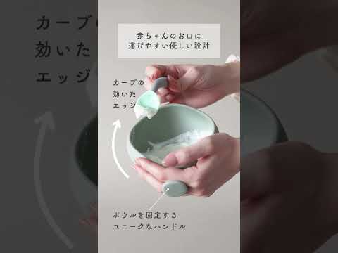 取っ手のついたユニークな形のボウルは、離乳食初期のママやパパがサポートしながら食べさせてあげる時期から、中期、後期に向かってお子さんが自立した食事に移行できるようデザインされています。