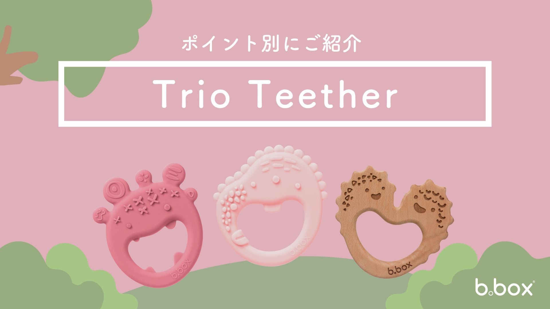 ビーボックスの歯固め、トリオティーサーは形の異なる3つの歯固めをセットにしました。
